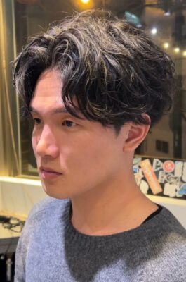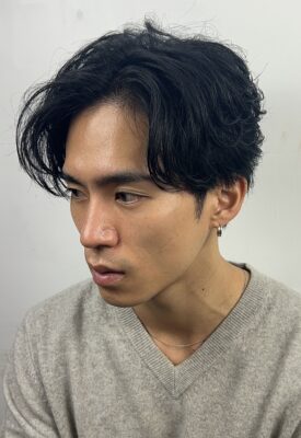 パーマをかけた感を出さず、「元々クセが良い人」のような自然な毛流れを作るスタイルです。